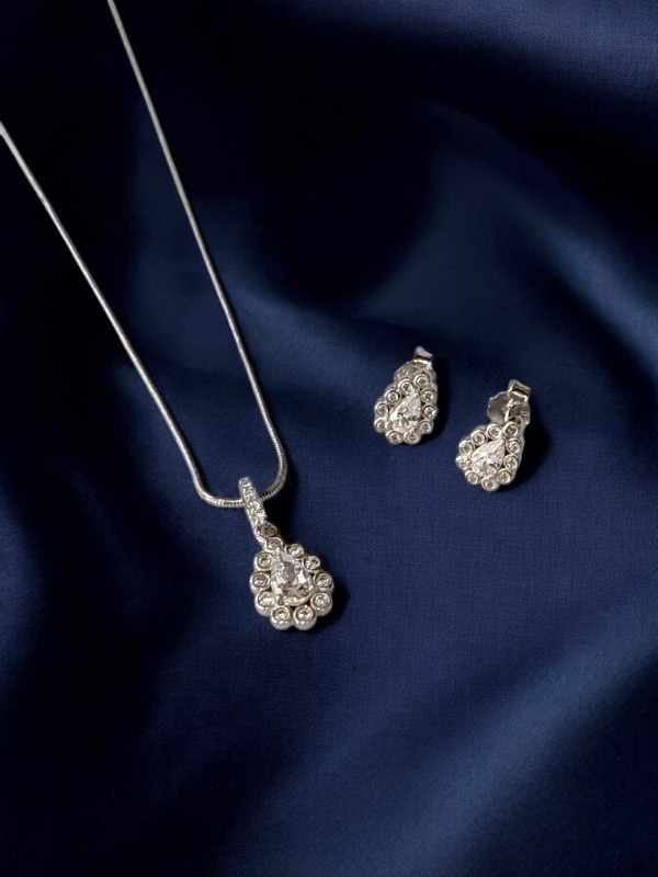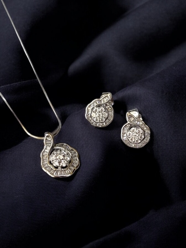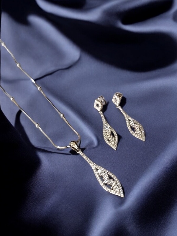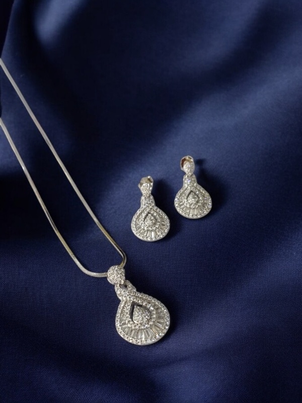 DESIGNER CZ WHITE STONE STERLING SILVER 925 CHAIN PENDANT SET | GIFT | FOR WOMEN AND GIRLS PST020