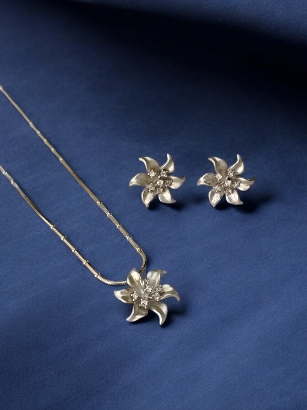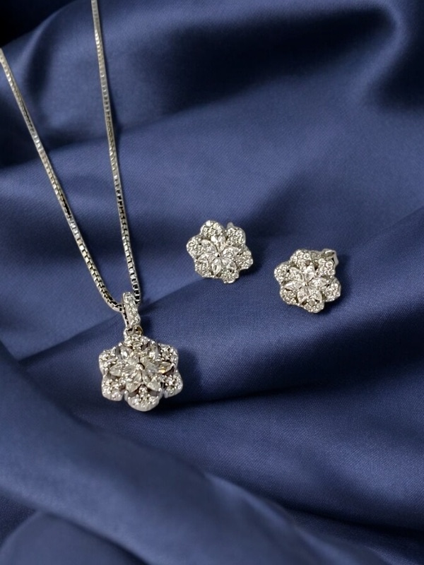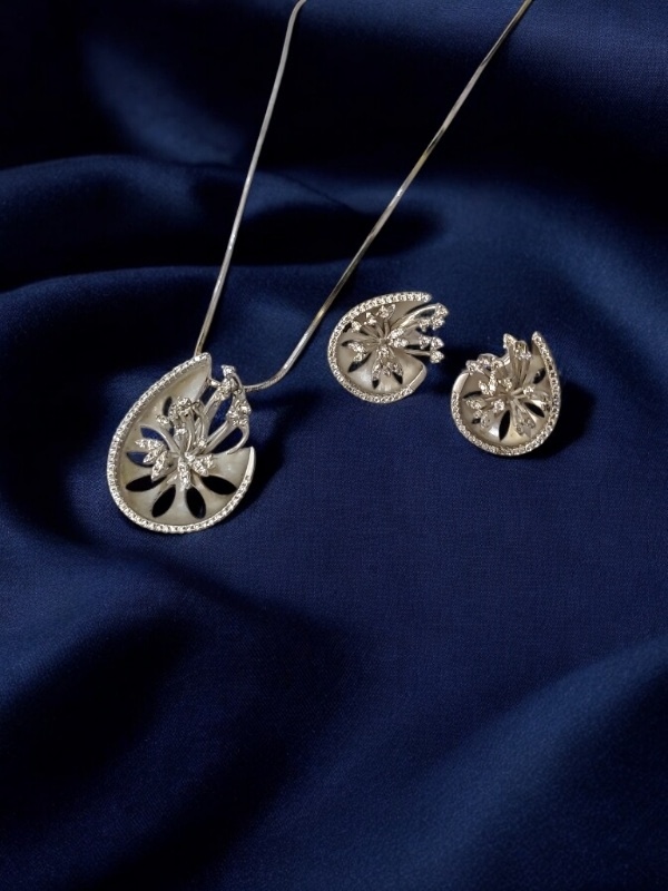 FLORAL DESIGNER CZ STONE STERLING SILVER 925 CHAIN PENDANT SET | GIFT | FOR WOMEN AND GIRLS PST022