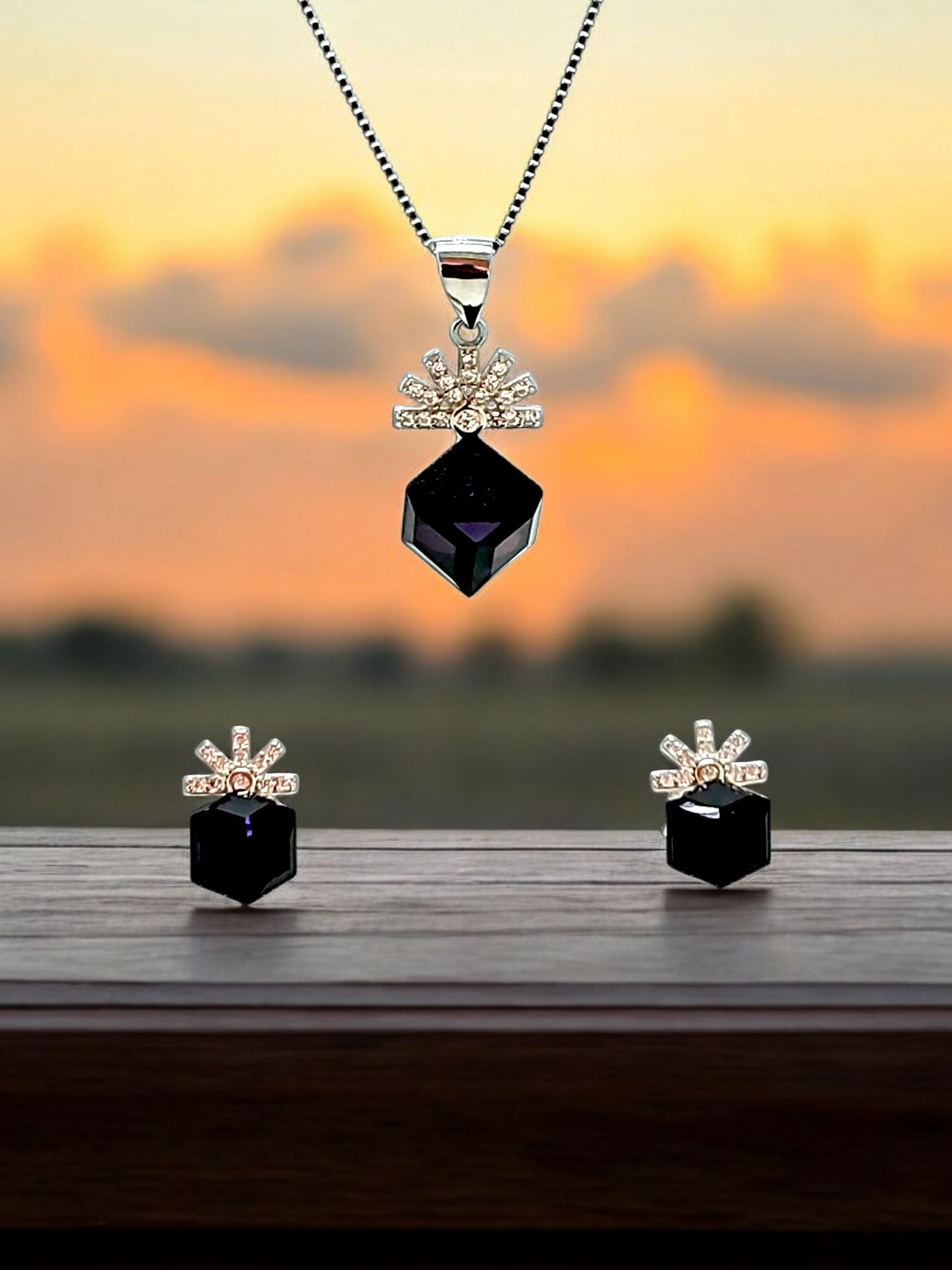 PYRAMID CZ STONE STERLING SILVER 925 CHAIN PENDANT SET | GIFT | FOR WOMEN AND GIRLS PST016