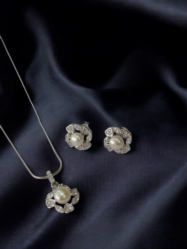NATURAL PEARL CZ STONE STERLING SILVER 925 CHAIN PENDANT SET | GIFT | FOR WOMEN AND GIRLS PST002