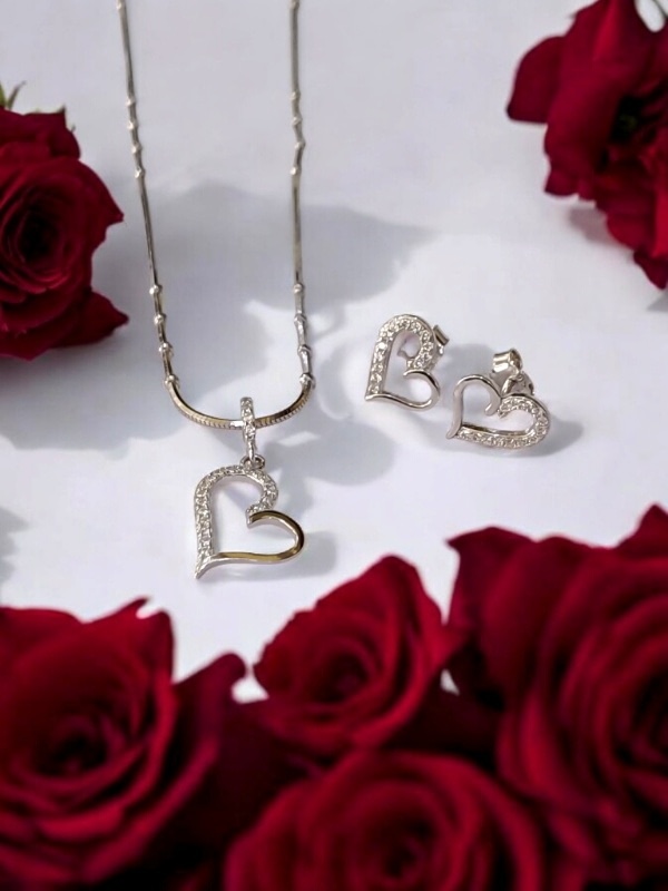 HEART CZ STONE STERLING SILVER 925 CHAIN PENDANT SET | GIFT | FOR WOMEN AND GIRLS PST014
