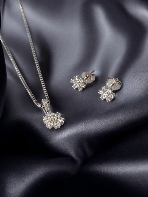 FLORAL CZ STONE STERLING SILVER 925 CHAIN PENDANT SET | GIFT | FOR WOMEN AND GIRLS PST015